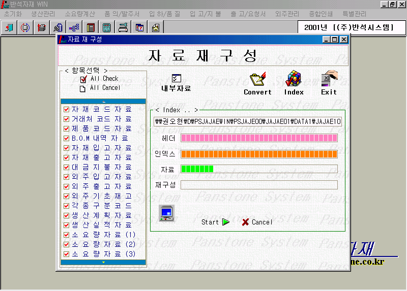¡Ø Convert : ¹Ý¼®ÀÚÀç(DOS¿ë) ProgramÀÇ data¸¦ windows¿ëÀ¸·Î up-gradeÇÕ´Ï´Ù.